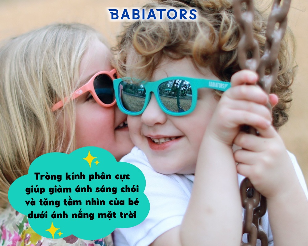 🌷Kính phân cực: Kính mát có tròng kính phân cực giúp giảm ánh sáng chói và tăng tầm nhìn của bé dưới ánh nắng mặt trời. Thêm nữa, bé của bạn trông sẽ rất ấn tượng phía sau mắt kính phân cực màu sắc tươi sáng của Babiators!